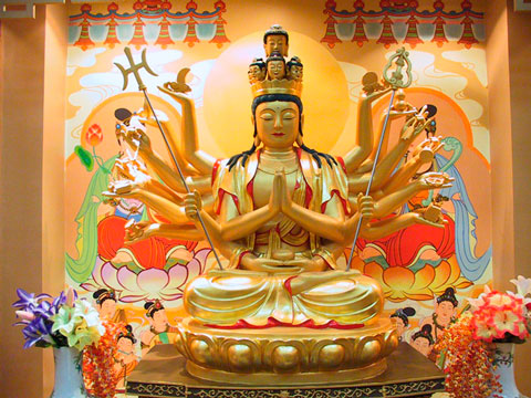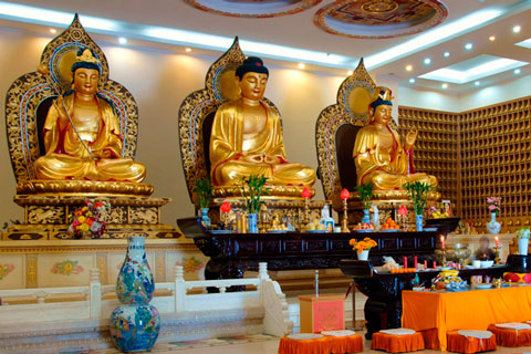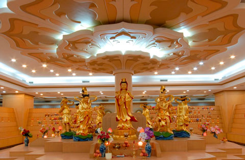 一千二百平方米的佛事大殿金光燦然,層高達十米,其博大、莊嚴與恢宏,實為罕見