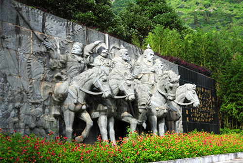 盡管從小熟知“岳母刺字”和“精忠報國”的故事,但站在精忠報國廣場上仰觀岳家軍的雕塑群時,仍感受到強烈的震撼。被堅執(zhí)銳的將士們簇?fù)碇振R而立的岳飛,他眺望遠(yuǎn)方,炯炯目光中表達(dá)了收復(fù)河山的堅毅。令旗招展下,千軍萬馬呼嘯跟隨,金戈鐵馬的沙場氣氛撲面而來……
