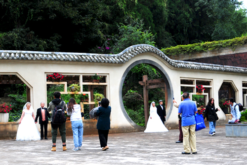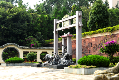 五世同堂親情廣場由主雕塑和背景浮雕兩部分組成,它以中國傳統(tǒng)文化為背景,展開了一個大家庭五世同堂的生動畫面。