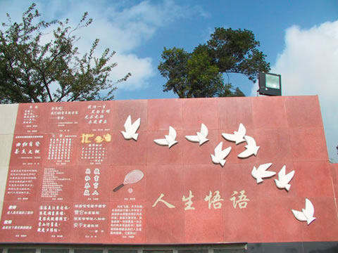 教師園的建設(shè)思想體現(xiàn)著“尊師重教”主題,一景一畫力求突出教師崇高的職業(yè)特征。教師園前景開闊、氣勢宏大,園區(qū)占地5000平方米,主景墻長一百二十米、高四米六,居中象征知識之門的漢白玉雕塑,用以書本為基座的巨型鋼筆裝飾造型,鮮明展示了“知識就是力量”的創(chuàng)意。兩側(cè)壁面上鐫刻著毛主席寫給革命老人徐特立的名言:你是我二十年前的先生,你現(xiàn)在仍然是我的先生,你將來必定還是我的先生。鐫刻著對教師職業(yè)特征的十種感人表述;鐫刻著幾部描述教師奉獻生涯的精典小說、影視作品摘要;鐫刻著老一輩教育家陶行知、聞一多等人的頭像;鐫刻著中國歷史上著名的教育家名錄。園區(qū)充滿濃郁的文化氛圍,構(gòu)成獨有的教育思想和文化景觀。