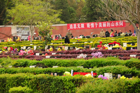 天頤園是金寶山首個茶園式風(fēng)格的墓區(qū)綠化嘗試,綠化特點(diǎn)是在墓位后面配置一排排綠籬,這些修剪整齊的綠籬恰如一排排椅背遮擋了墓碑,看上去好象是一片依山而下的茶園。在綠化樹種方面精心選擇了不同的植物,形成一個個色彩繽紛的區(qū)域,使墓區(qū)宛如一個多彩紛呈的大花園。綠籬的顏色隨著季節(jié)不同而發(fā)生變化,使得一年四季都顯得充滿生機(jī)。天頤園的墓型本著精巧實(shí)用的原則,有多種造型提供選擇,滿足了客戶的不同需求。天頤園這種茶園式的建設(shè)風(fēng)格,受到客戶的普遍歡迎,也廣受同行的好評。
