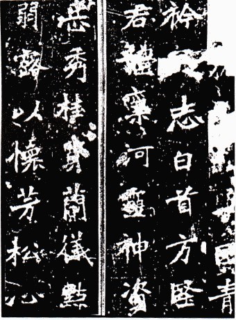 此碑立于北魏明孝帝正光三年(五二二),全稱《魏魯郡太守張府君清頌之碑》,現(xiàn)在山東曲阜孔廟中。是魏碑后期佳作之一!稄埫妄埍愤\筆剛健挺勁、斬釘截鐵,可看作是《始平公》的風(fēng)格的延續(xù)和發(fā)展。如橫、直劃的方筆起筆,折處的方棱及三角形的點等,都保留了《始平公》的舊貌;但也并非筆筆都方,而是變化多端,有方有圓,比《始平公》更精美細膩。此外,較之早期魏碑,我們不難看出魏碑由粗到細的演變過程。