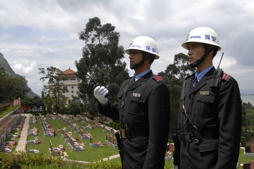 保衛(wèi)部 為了維護園區(qū)安寧,全部由退伍軍人組成的保衛(wèi)部,二十四小時承擔著安全保衛(wèi)任務,無論是固定哨位還是巡邏查看,他們始終保持著警惕的目光。園區(qū)范圍廣大、樹林茂密,除了先進的視頻設備,保衛(wèi)處還配備了機動巡邏車輛,以技防和人防的合理組合,在安全和防火兩個方面,確保了生命公園的平安祥和。