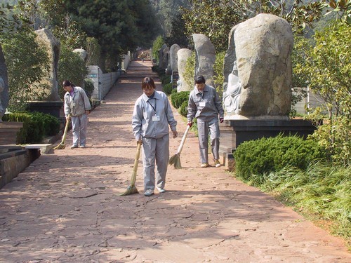 維修中心 綠化管網(wǎng)、自動(dòng)噴灌、園區(qū)照明、設(shè)備修理、水電維護(hù),都由維修中心全面承擔(dān),為園區(qū)的正常營運(yùn)提供了保障。維修中心下轄公衛(wèi)組,負(fù)責(zé)園區(qū)全部清潔衛(wèi)生工作。墓區(qū)的衛(wèi)生工作不僅是道路的清掃,還要定期對每個(gè)墓碑進(jìn)行擦拭,清除周邊雜物,保持墓位整潔。辛勤的工作贏得了客戶的肯定,她們因此被譽(yù)為“安樂園美容師”。