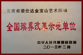 | 全國殯葬改革示范單位 2013年3月1日,國家民政部公布了第三批全國殯葬改革示“范單位名”單。金寶山藝術(shù)園林名列其中。金寶山將努力做好示范作用,不斷前進(jìn),不斷完善。 |