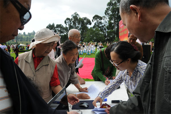 1、7月31日上午,軍魂園小廣場“英雄墻上的紅色人生——讓我們陪他們過八一”活動現(xiàn)場報(bào)名。