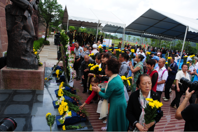 合唱結(jié)束之后,人們領(lǐng)取鮮花,跟隨禮儀隊向英雄雕塑獻花。本次活動內(nèi)容還包括展覽、座談會、慰問信等內(nèi)容,這些別開生面的主題活動,用多種形式詮釋了金寶山對軍魂的理解,對奉獻終身的革命先輩的敬意。
