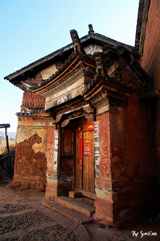 我覺得麗江是濃烈的,是粉飾的,是頹廢的,淺嘗即止,不可沉迷。在一個陽光明媚的早晨,與“兩只貓”門口的兩個木偶合影留念之后,我們匆匆離開了,下一個目標(biāo),沙溪。麗江到劍川有班車,17元/人,約2小時車程,劍川到沙溪則只有小面的,就在車站門口,不定時發(fā)車,滿6人就走,票價8元,車站對面有家清真牛肉館,10元一份,牛肉超級好吃,我們來回都在這里用餐。劍川到沙溪已經(jīng)全部鋪成了水泥路面,車程也要1個多小時,到了沙溪,感覺到了一個清澄寧靜的世界,山谷、河流、森林、古街、老屋,一切都沐浴在和暖的陽光下,沒有什么人,路邊的老屋門口,曬著太陽的老人坐在藤椅上打著瞌睡,連走過的貓都特意放輕了腳步。小鎮(zhèn)不大,我們背著大包兜了一圈,入住攻略上介紹的臺灣MM在此開的58號小院(客棧),40元/床位。