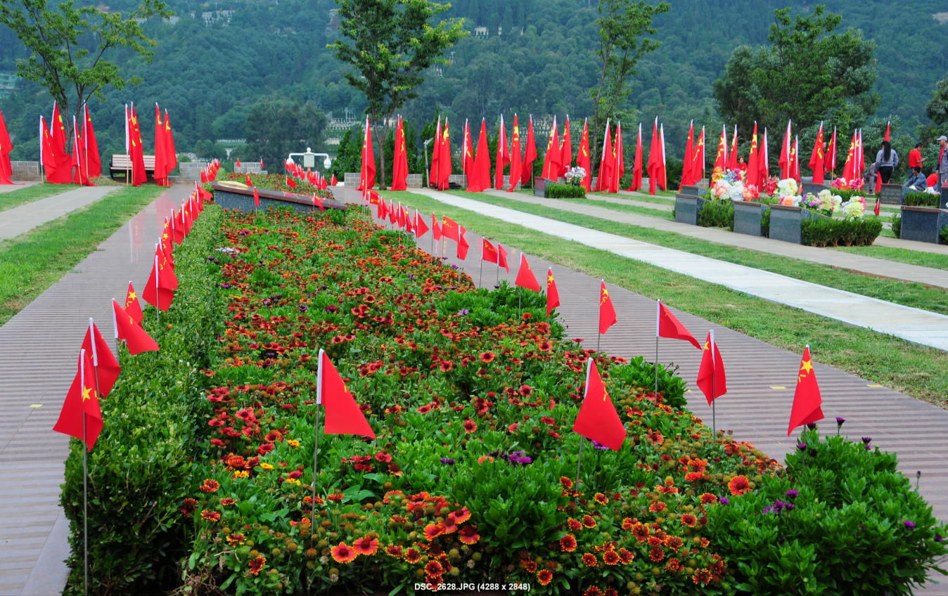 當(dāng)天的金寶山,每座墓前都插上了小軍旗,在軍魂園、忠誠(chéng)衛(wèi)士英烈廣場(chǎng)、忠魂園,鮮紅的大軍旗迎風(fēng)飄揚(yáng),整個(gè)園區(qū)莊嚴(yán)肅穆。