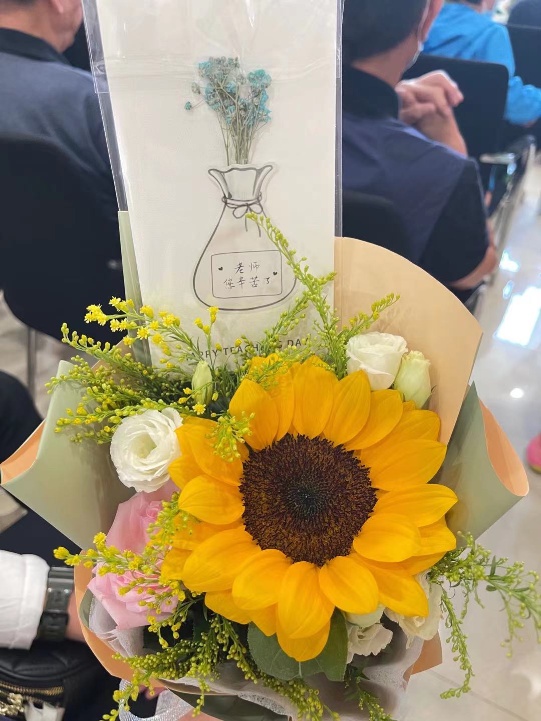 與此同時(shí),金寶山員工統(tǒng)一制作了花束,帶著賀卡和祝福慰問(wèn)了退休老師群體,在這個(gè)特殊的日子里,為退休老教師們送去一份敬意與祝福。