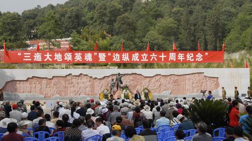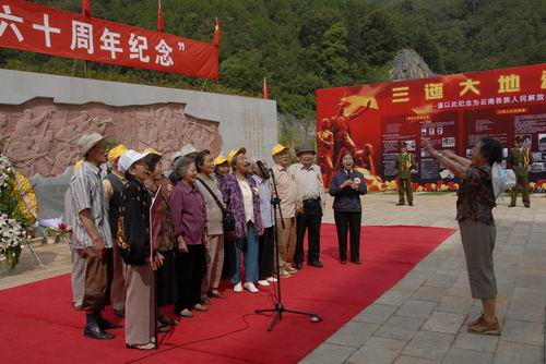 原邊縱司令部老戰(zhàn)士龍鼎生更是萬分感慨:在建國六十周年來臨之際,我們十分緬懷那些為了共和國的開創(chuàng)英勇獻(xiàn)身的先烈,是他們用自己的青春和熱血,換來了新中國的誕生,數(shù)百老兵這番聚會,正是為了回顧云嶺高原那段風(fēng)云激蕩的革命歲月,回顧那些披荊斬棘的革命先輩。
